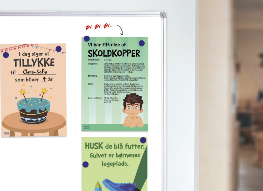 Brug plakaterne til hurtigt at informere om blandt andet sociale arrangementer, sygdomme, møder, fødselsdage og til at byde nye ansigter velkommen.