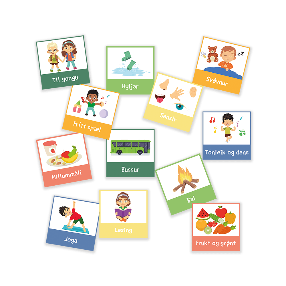 • 85 små piktogrammer med aktiviteter. 8×8 cm.