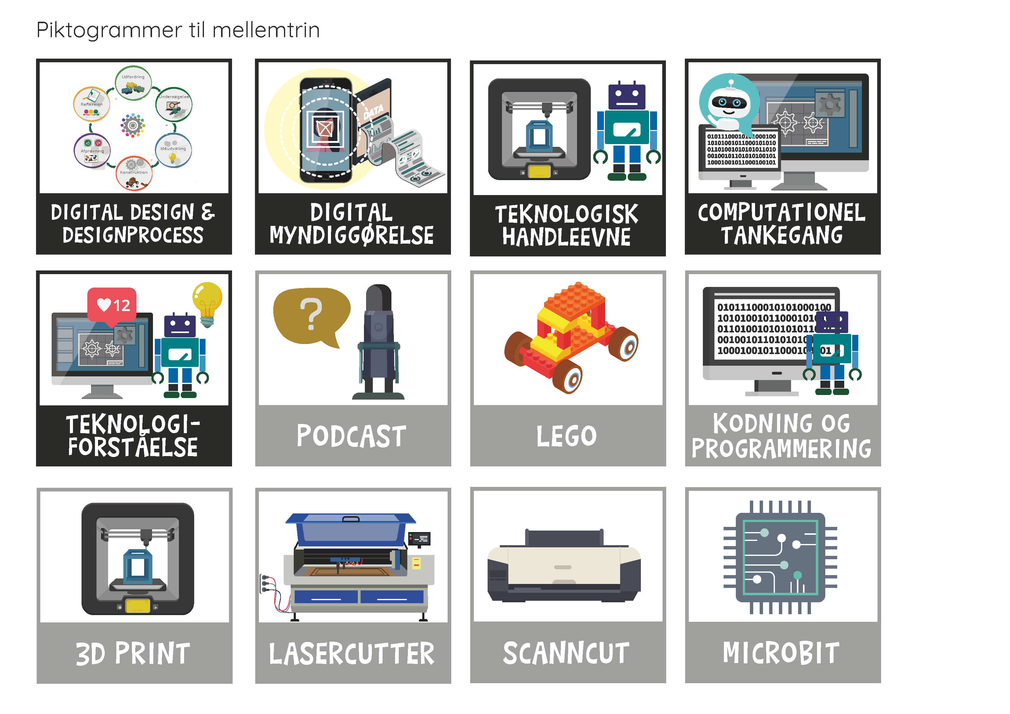Du får store piktogrammer til aktiviteterne omkring teknologiforståelse.