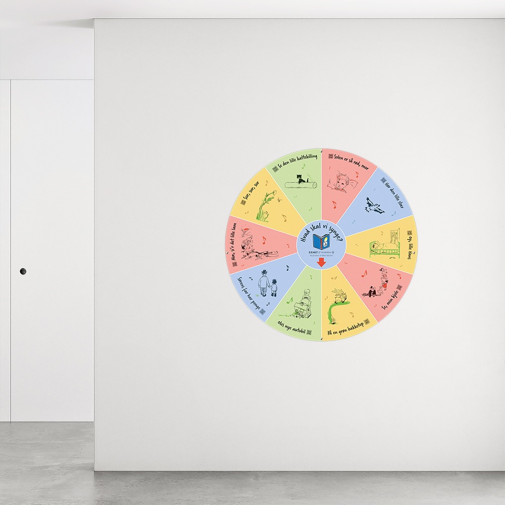 Dette sanghjul indeholder 10 sange kendt fra De små synger. Væk den ikoniske sangbog til live og giv børnene en magisk oplevelse af visuel sangformidling – der samtidigt introducerer musik og sang i børnenes daglige rutine.