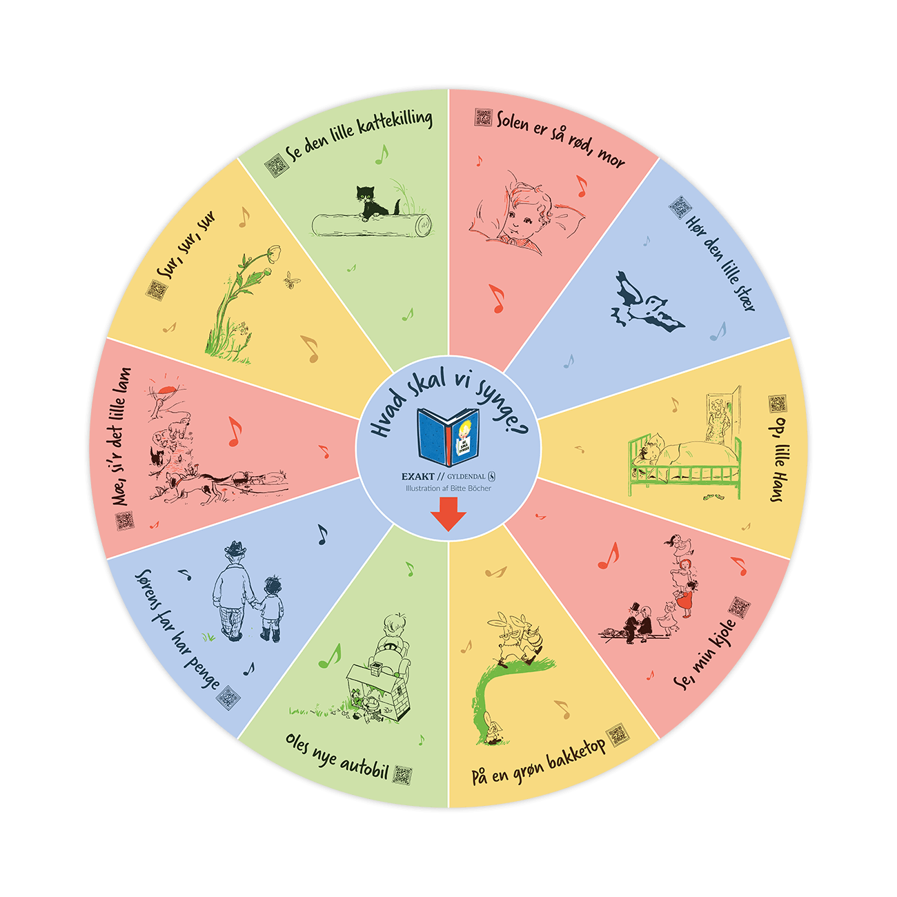 I anledning af De små syngers 75-års jubilæum lancerer EXAKT, i samarbejde med Gyldendal, en ny designserie med en moderne visualisering af de kendte og elskede sange fra sangbogen. Indret daginstitutionen med bidder fra den danske sangskat, visuelt baseret på de originale illustrationer af Bitte Böcher. Scan designets QR-kode, og sangens melodi afspilles direkte på din enhed.